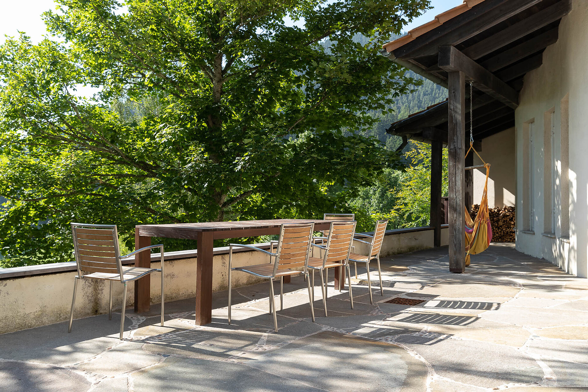 Ein gutes Gasthaus (2 Falstaff Gabeln) ist fußläufig erreichbar und bekannt für seine authentische, regionale Küche. Wer lieber am Haus bleibt, nutzt die großzügige Terrasse für lange Abende, zum Grillen, Spielen oder Gespräche bei einem guten Glas Wein.