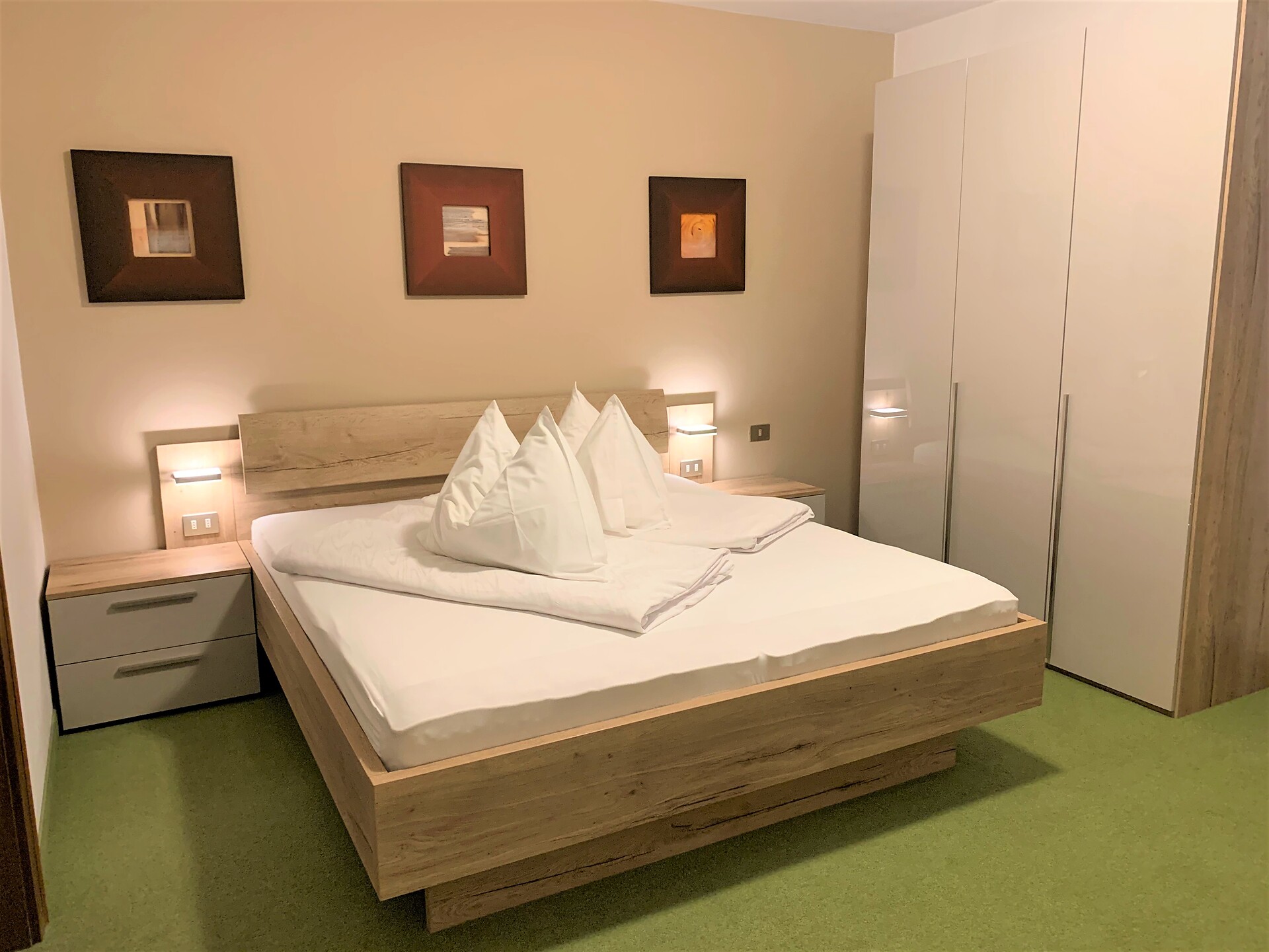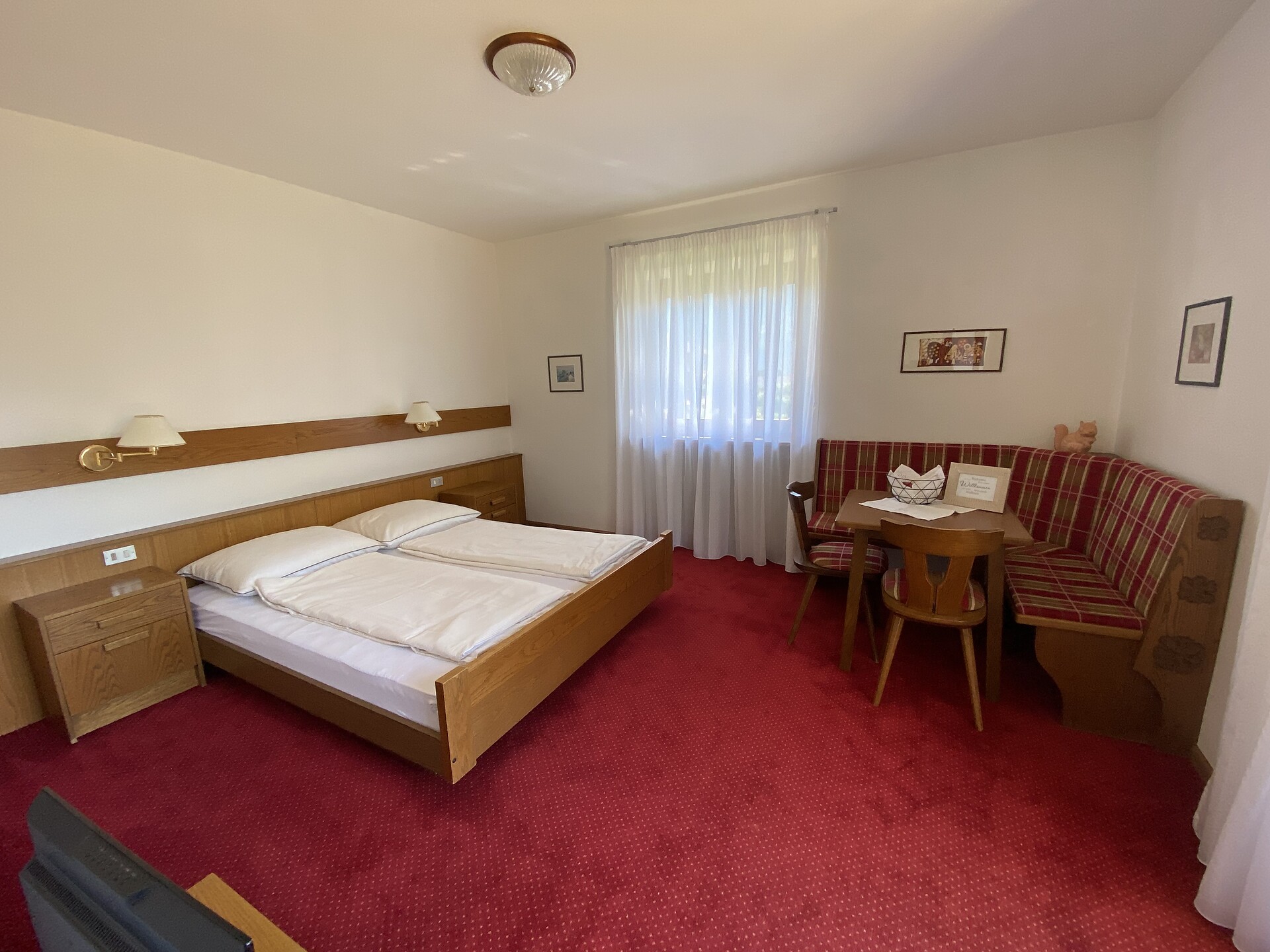 Die Zimmer sind sehr geräumig, mit sonnigem Balkon, von dem man einen herrlichen Ausblick hat.