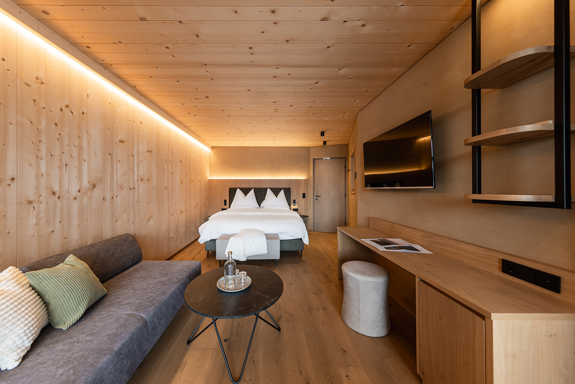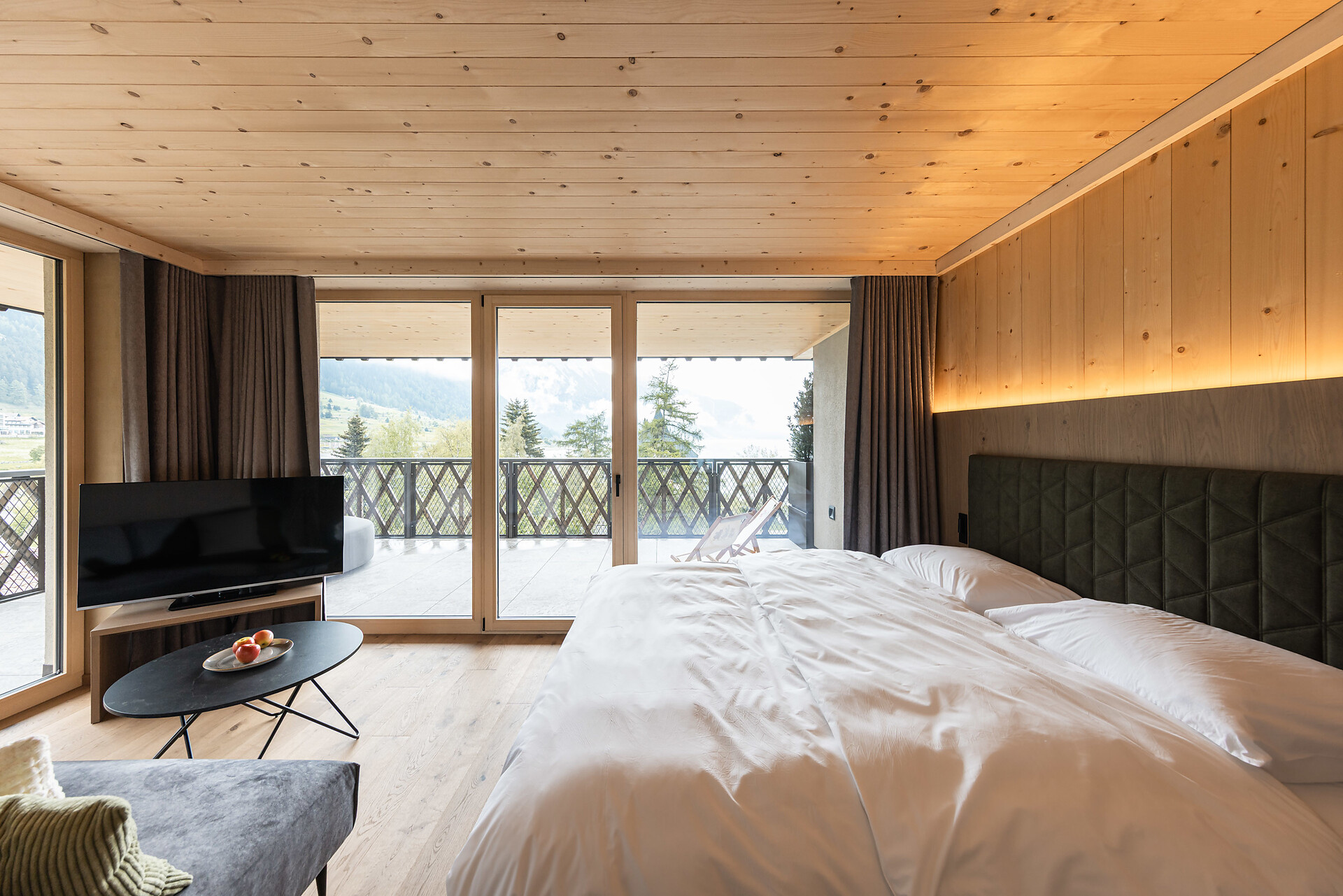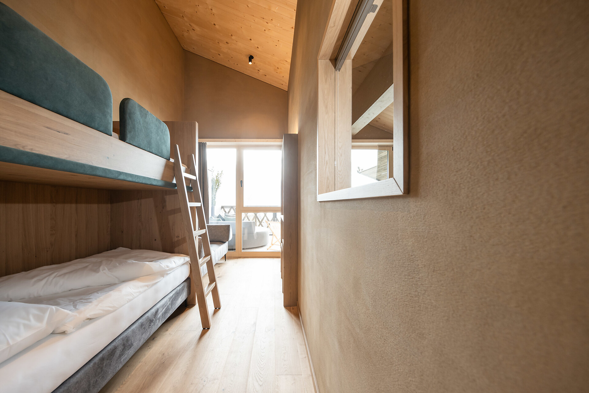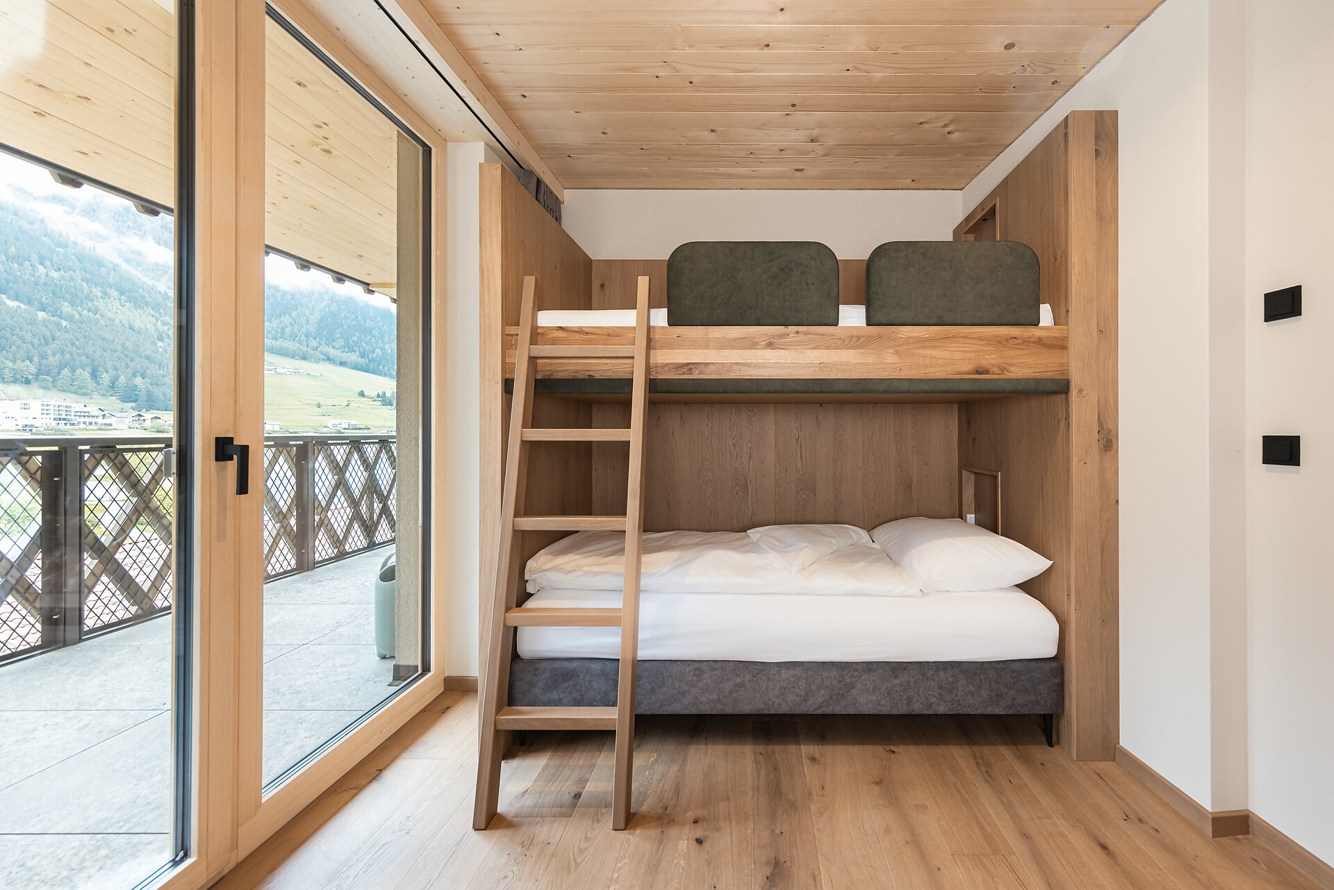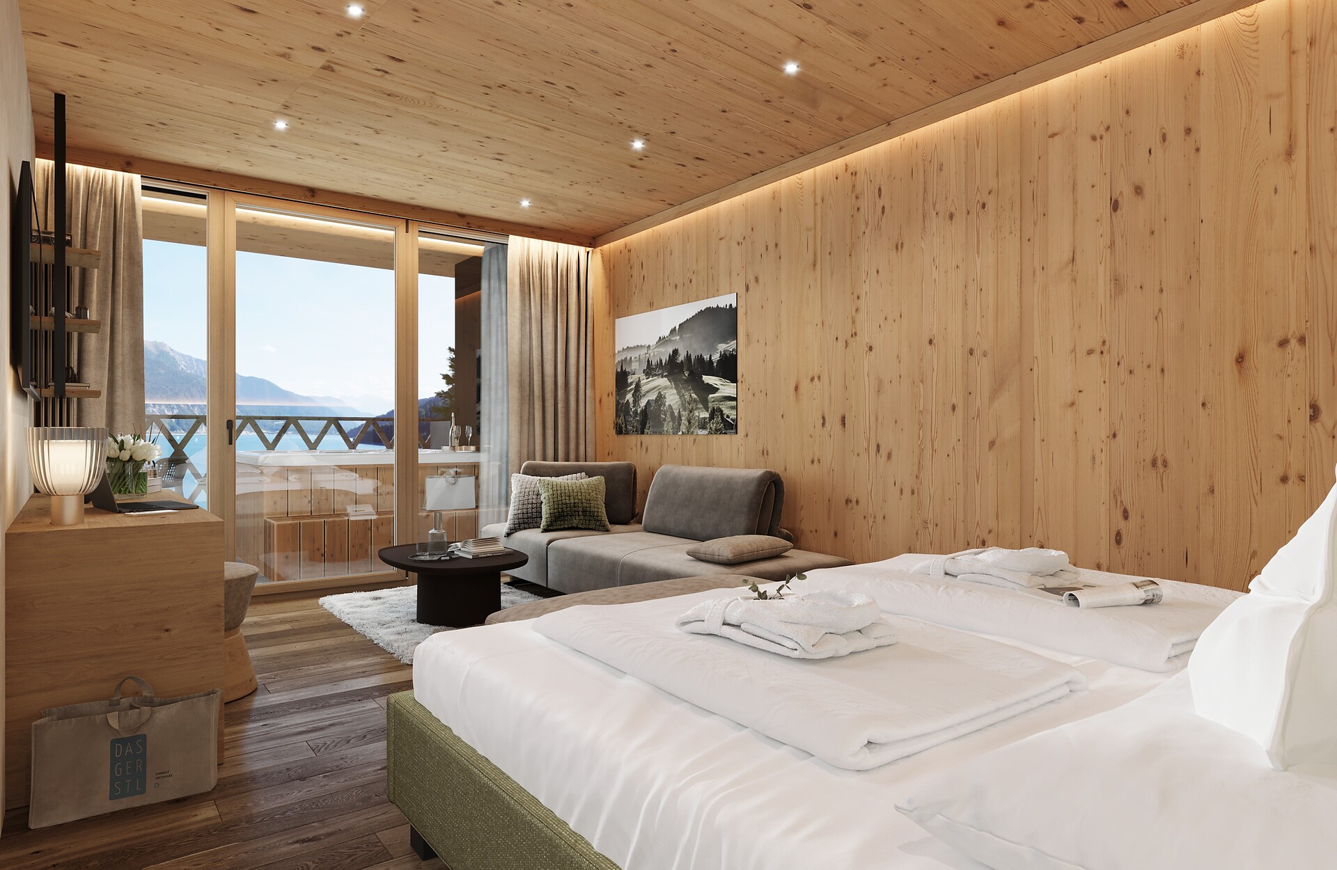 „65 individuelle Familiensuiten und Studios, die meisten mit Blick auf den Reschensee und ausgestattet mit natürlichen, nachhaltigen und regionalen Materialien, fügen sich organisch in das von HOLZIUS in Vollholzbauweise geschaffene Ganze“, erzählt Gastgeber Lukas Gerstl. Gemeinsam mit den zahlreichen Spaßmöglichkeiten – Aqua Fun Park, Abenteuerspielplatz, Spa-Landschaft und vieles mehr – in denen ebenso auf ein unverfälschtes Erleben wert gelegt wird (plastikfreies Spielmaterial, natürlich behandeltes Poolwasser, regionales kulinarisches Angebot, etc.), wird eine kleine Utopie von der perfekten Atempause in und mit der Natur im echten Leben wahr.