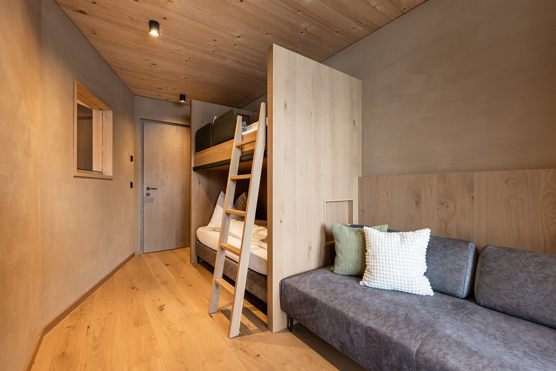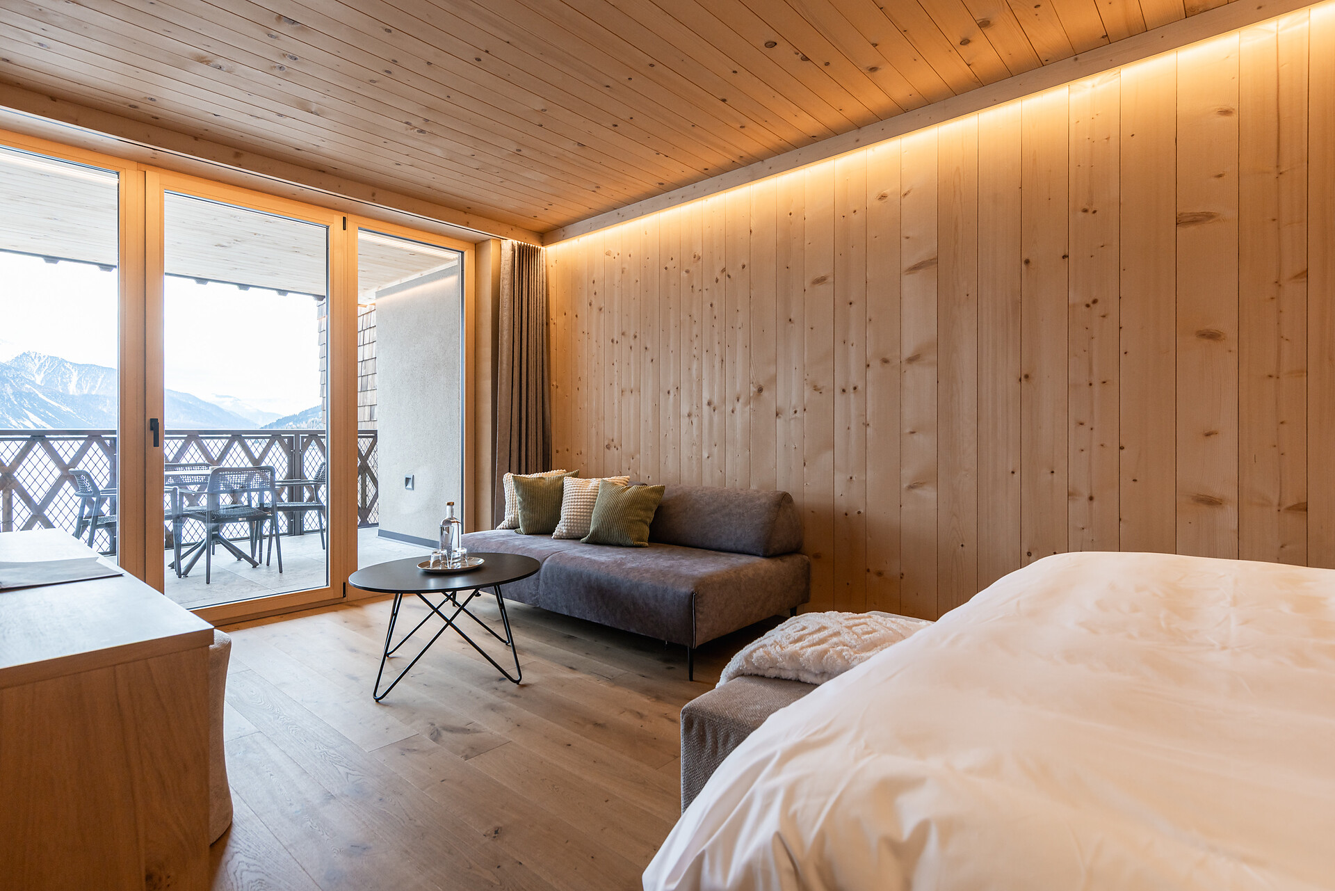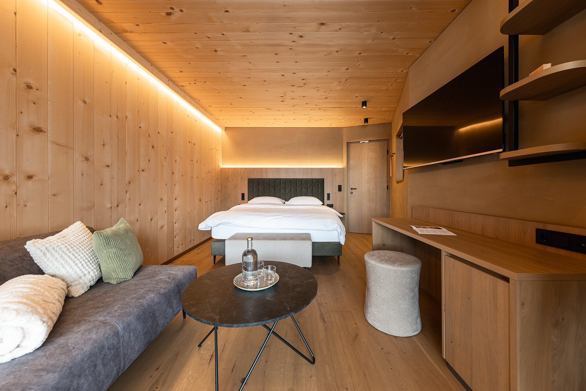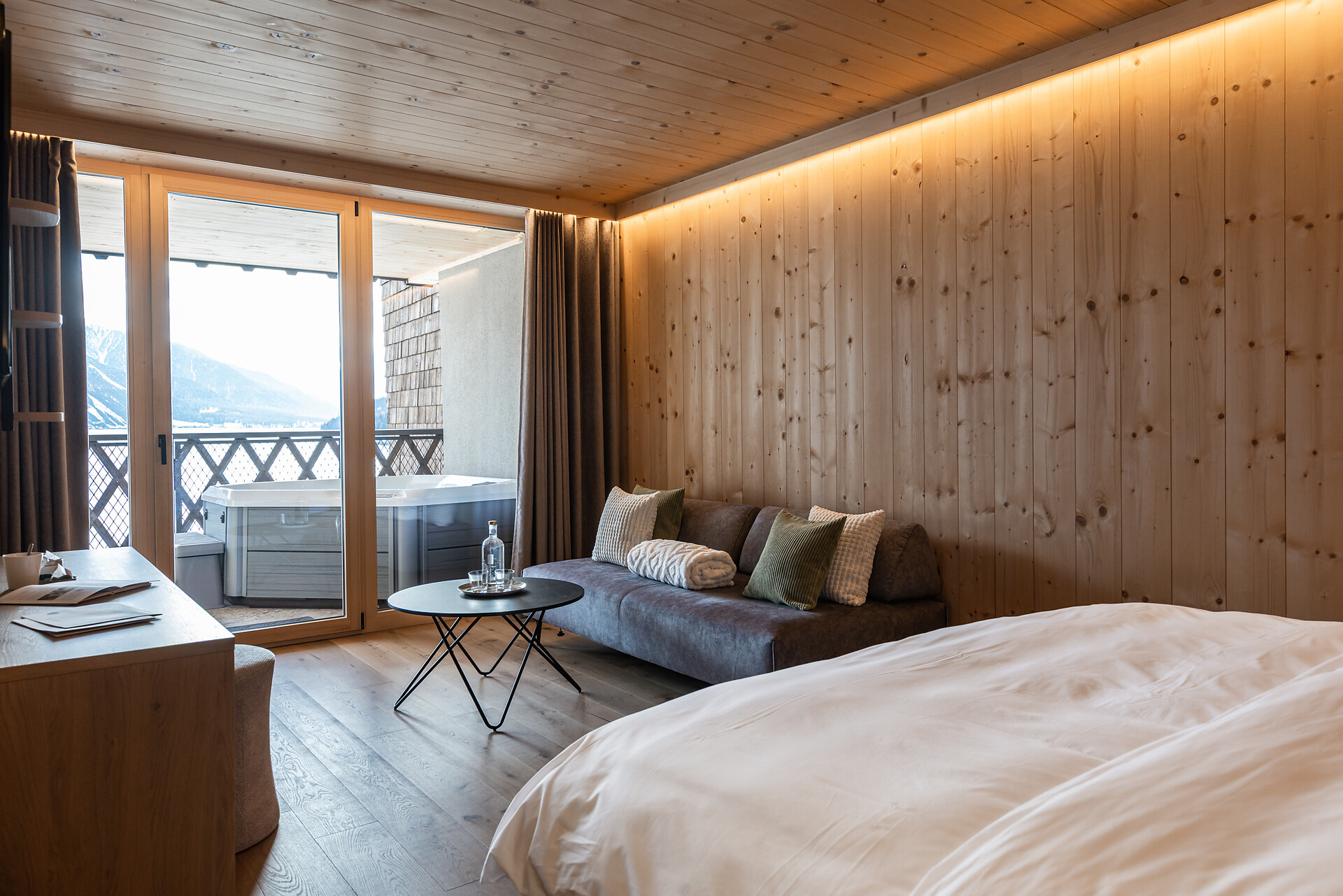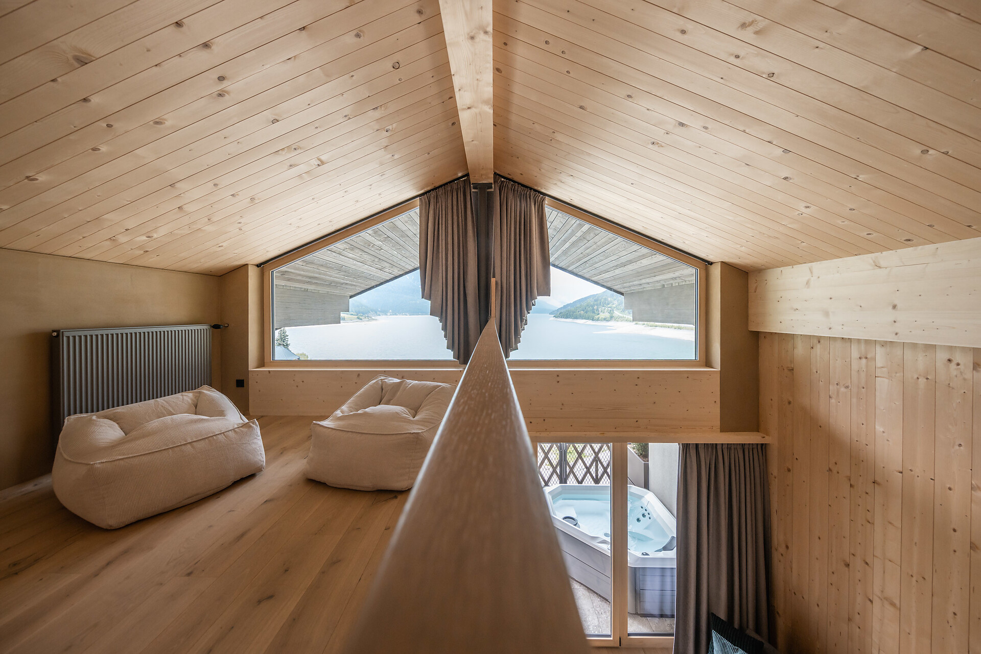 „65 individuelle Familiensuiten und Studios, die meisten mit Blick auf den Reschensee und ausgestattet mit natürlichen, nachhaltigen und regionalen Materialien, fügen sich organisch in das von HOLZIUS in Vollholzbauweise geschaffene Ganze“, erzählt Gastgeber Lukas Gerstl. Gemeinsam mit den zahlreichen Spaßmöglichkeiten – Aqua Fun Park, Abenteuerspielplatz, Spa-Landschaft und vieles mehr – in denen ebenso auf ein unverfälschtes Erleben wert gelegt wird (plastikfreies Spielmaterial, natürlich behandeltes Poolwasser, regionales kulinarisches Angebot, etc.), wird eine kleine Utopie von der perfekten Atempause in und mit der Natur im echten Leben wahr.