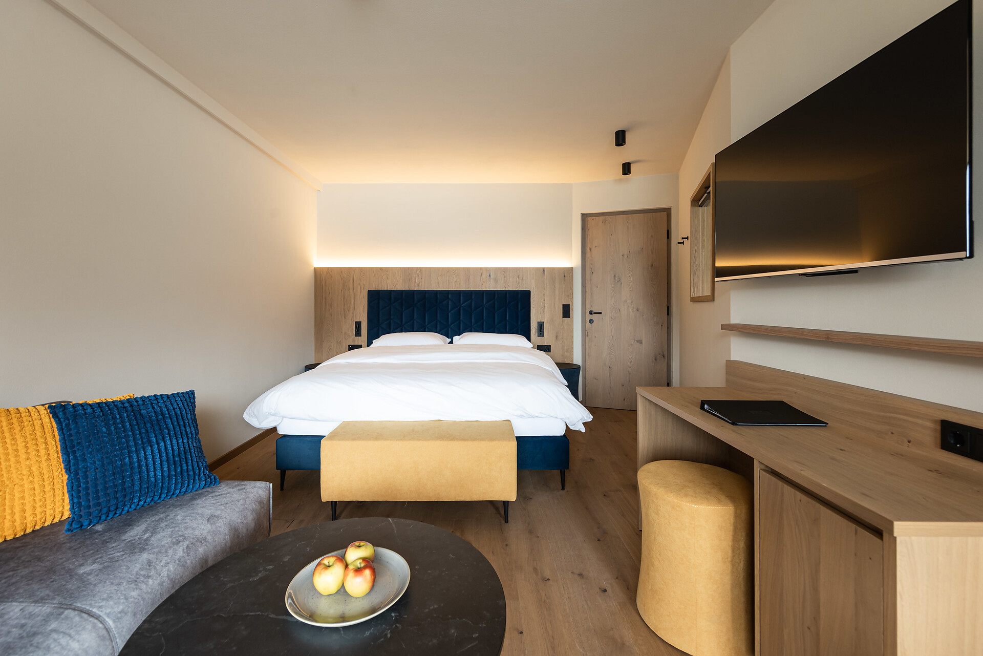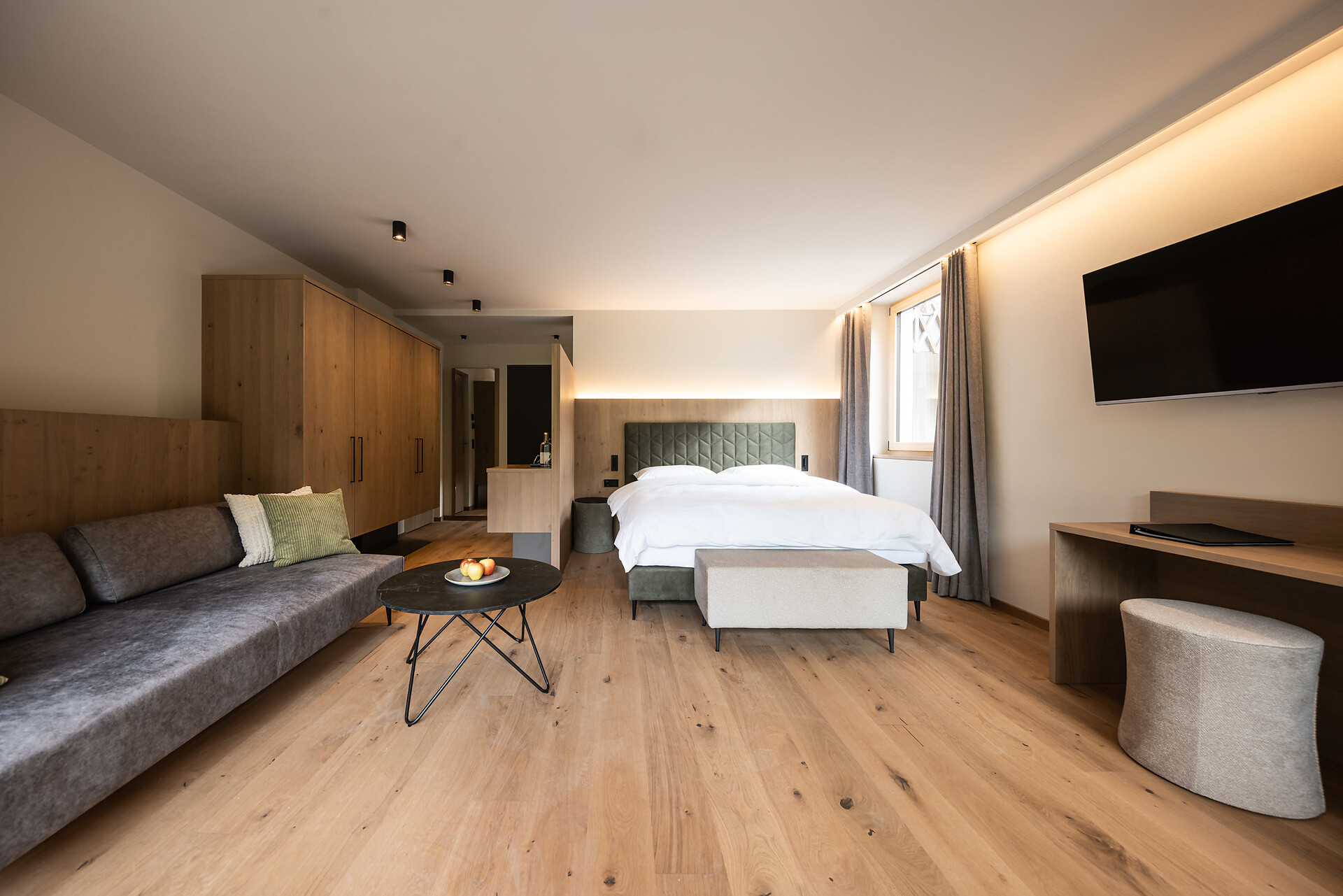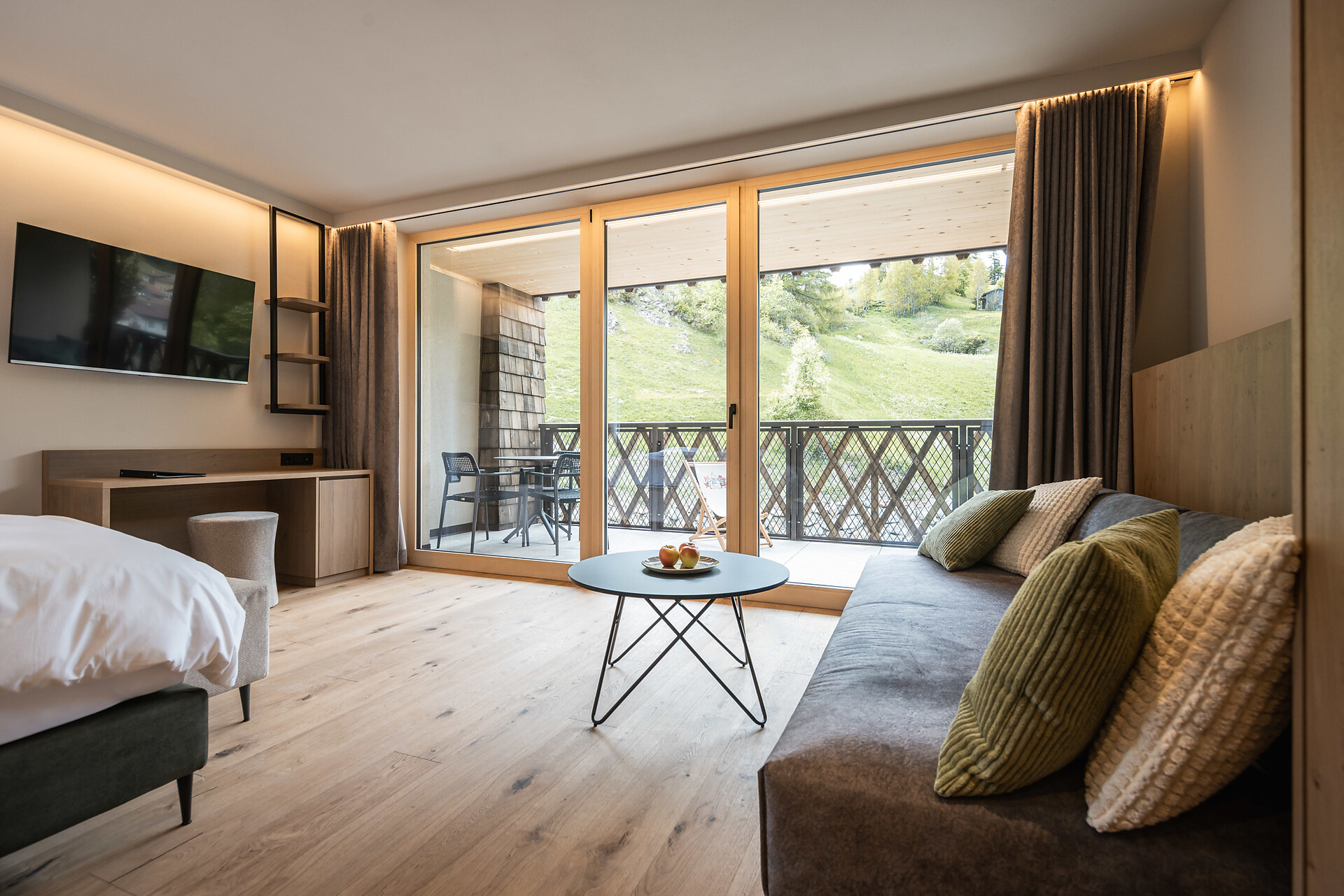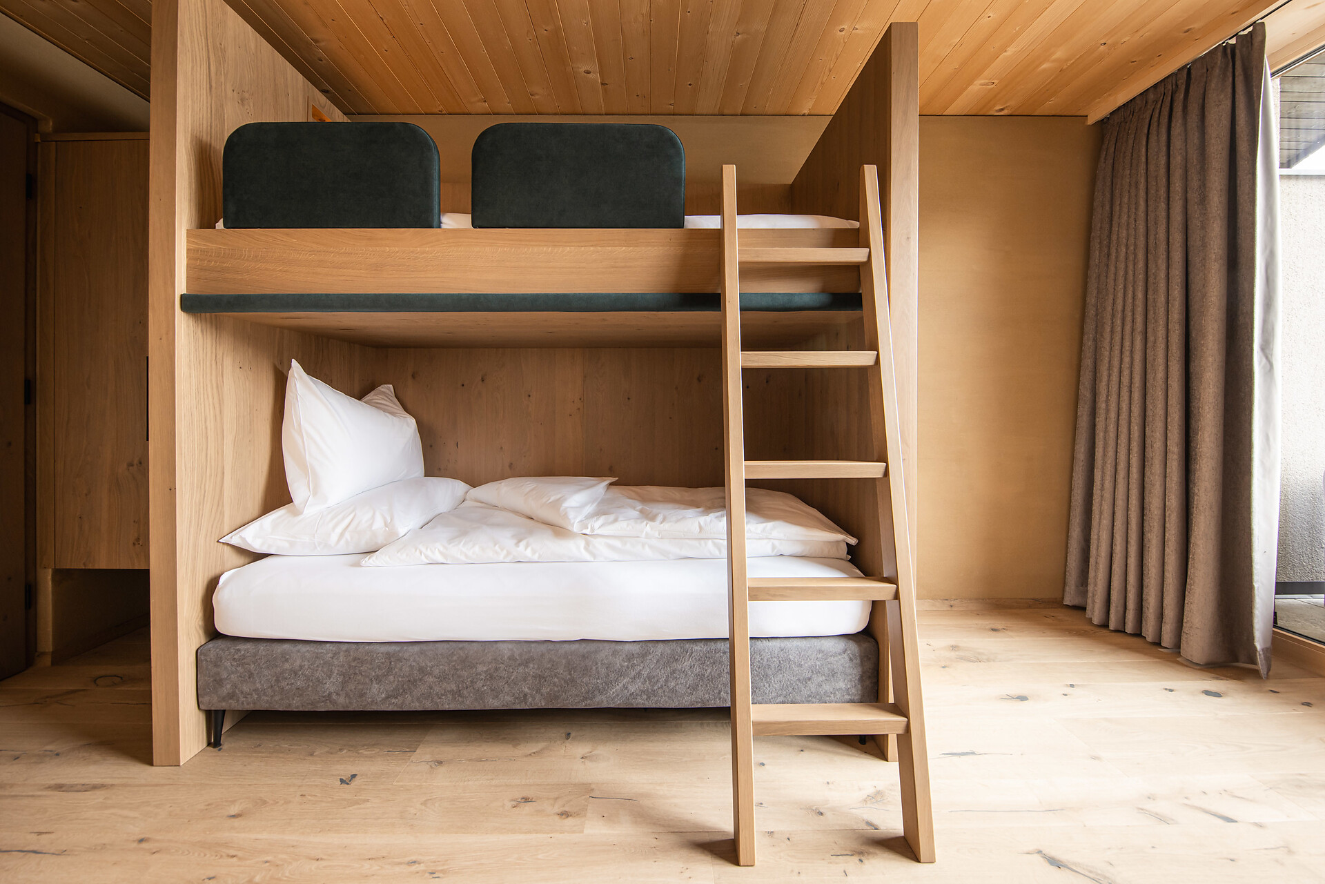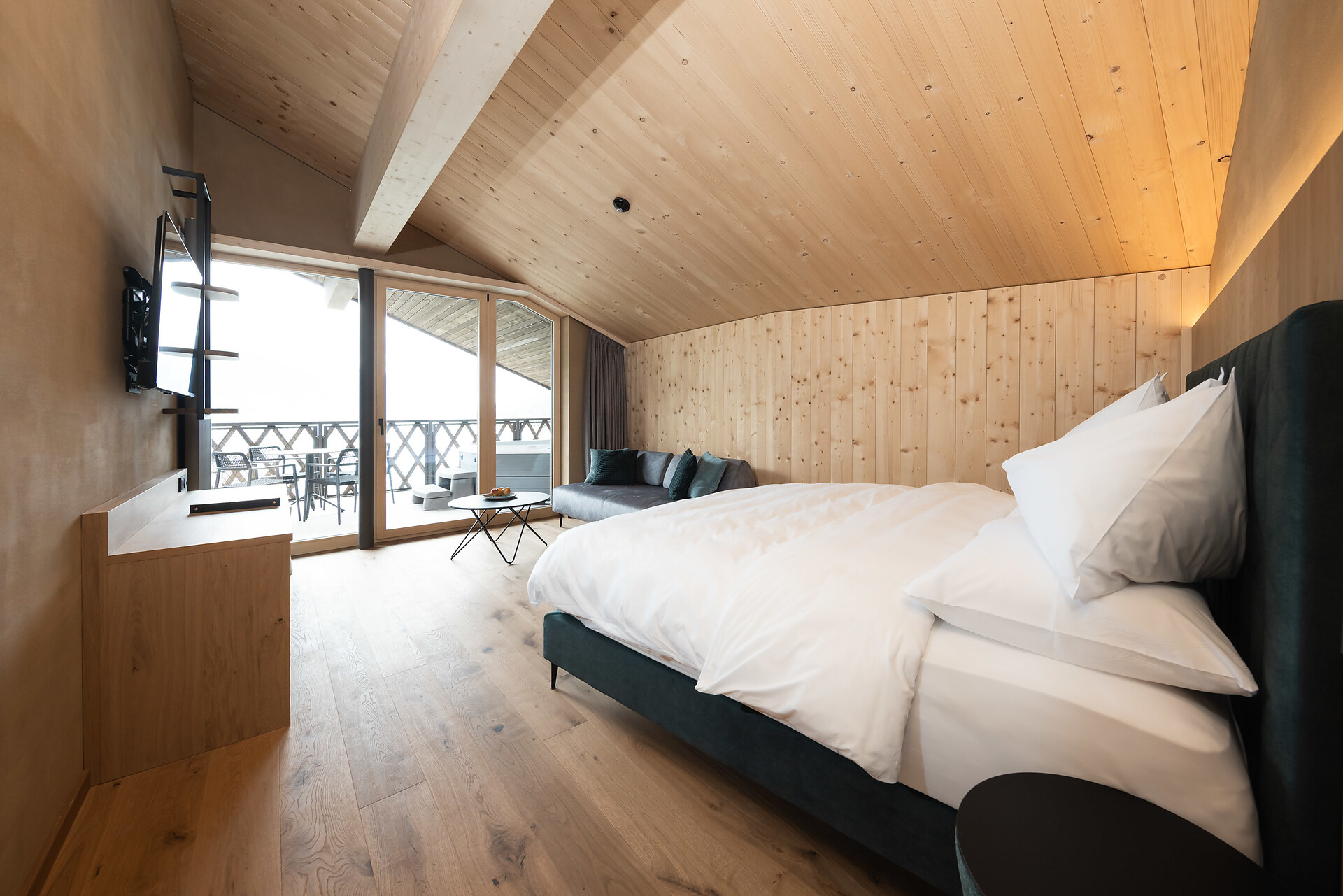 „65 individuelle Familiensuiten und Studios, die meisten mit Blick auf den Reschensee und ausgestattet mit natürlichen, nachhaltigen und regionalen Materialien, fügen sich organisch in das von HOLZIUS in Vollholzbauweise geschaffene Ganze“, erzählt Gastgeber Lukas Gerstl. Gemeinsam mit den zahlreichen Spaßmöglichkeiten – Aqua Fun Park, Abenteuerspielplatz, Spa-Landschaft und vieles mehr – in denen ebenso auf ein unverfälschtes Erleben wert gelegt wird (plastikfreies Spielmaterial, natürlich behandeltes Poolwasser, regionales kulinarisches Angebot, etc.), wird eine kleine Utopie von der perfekten Atempause in und mit der Natur im echten Leben wahr.