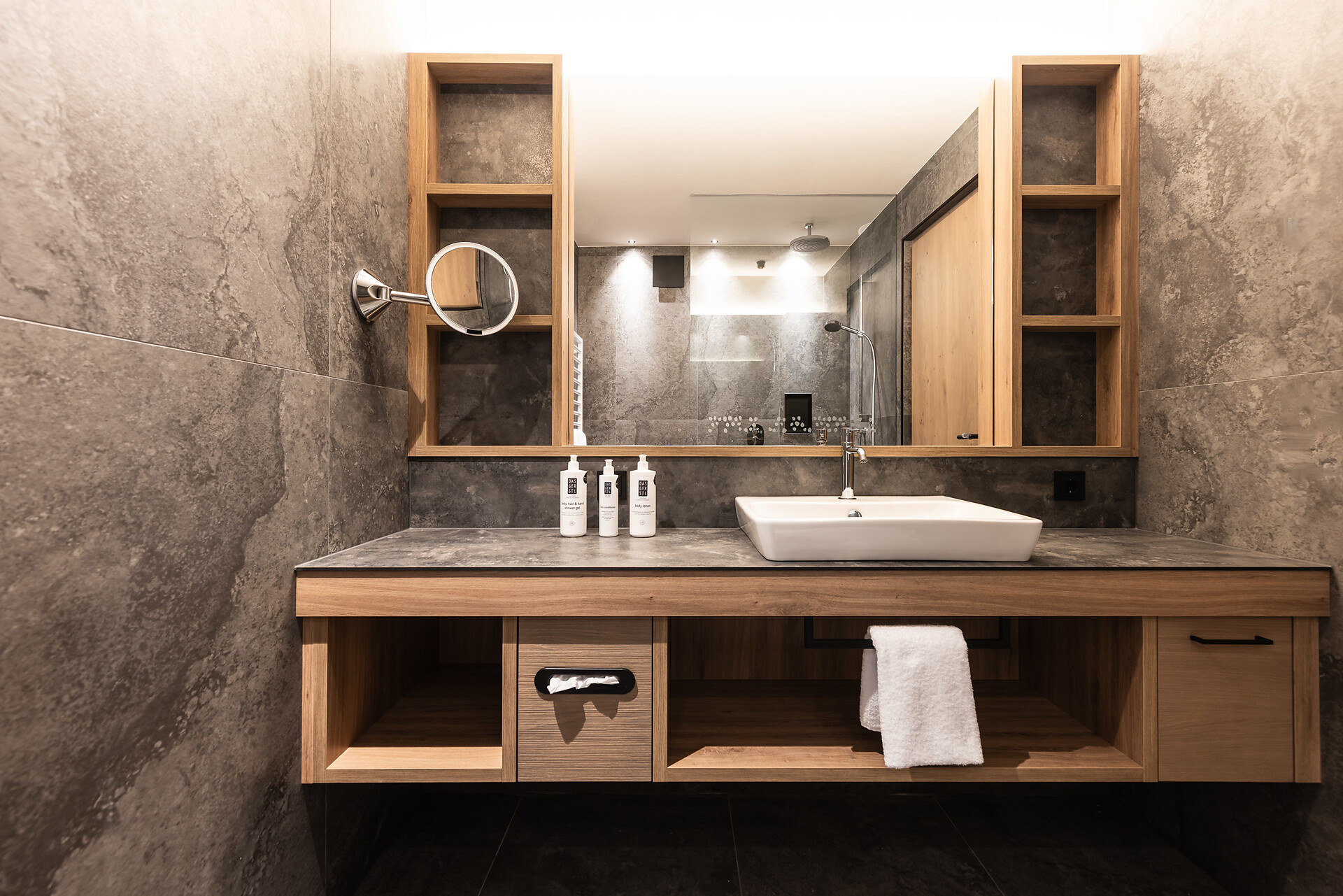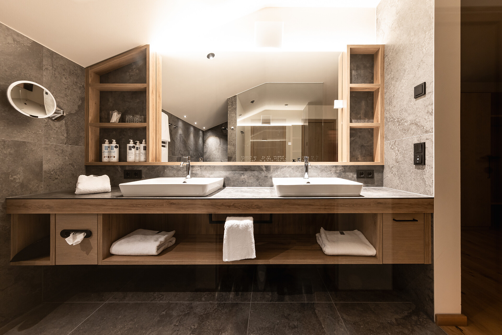 Etwa bemühen wir uns im Rahmen unserer r30 Philosophie darum, die meisten der Rohstoffe, die im Hotel-Betrieb so gebraucht werden, regional im Radius von 30 km – zu beziehen. Das originale Vinschger Brot kommt vom örtlichen Bäcker, das Wagyu-Rind aus unserer eigenen Zucht – und sogar unsere r30-Kosmetiklinie, die im Venosta Spa und in Ihrer Suite wartet, wird aus den Naturschätzen der Umgebung gewonnen. Und wer als Gast mitmachen möchte, kann zum Beispiel unnötige Handtuchwechsel oder Zimmer-Reinigungen abbestellen und mithelfen, Ressourcen zu schonen.