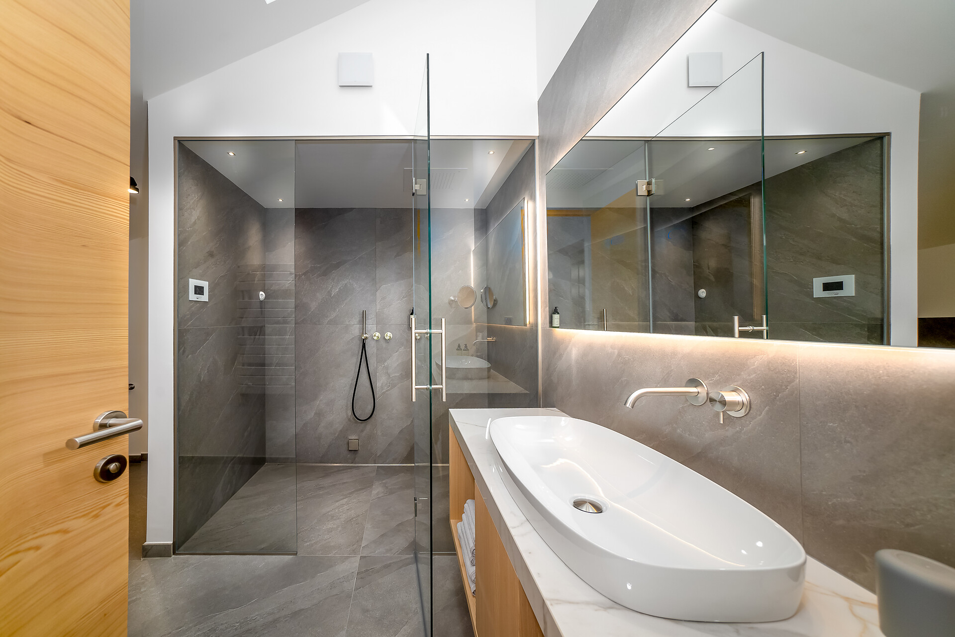 - Directly at the slope