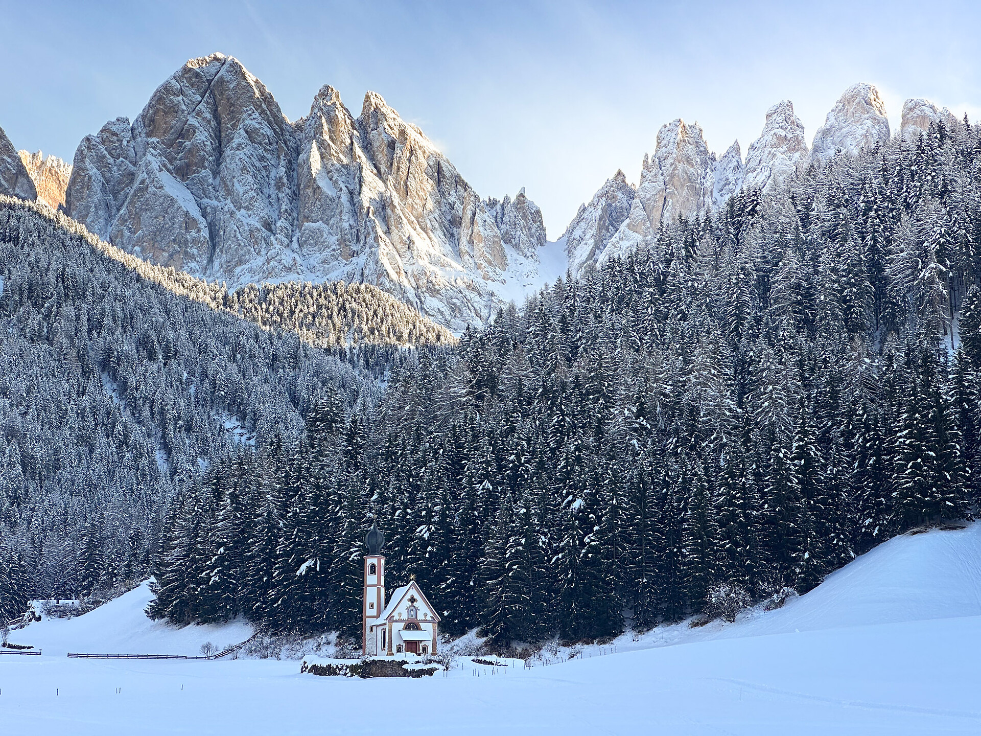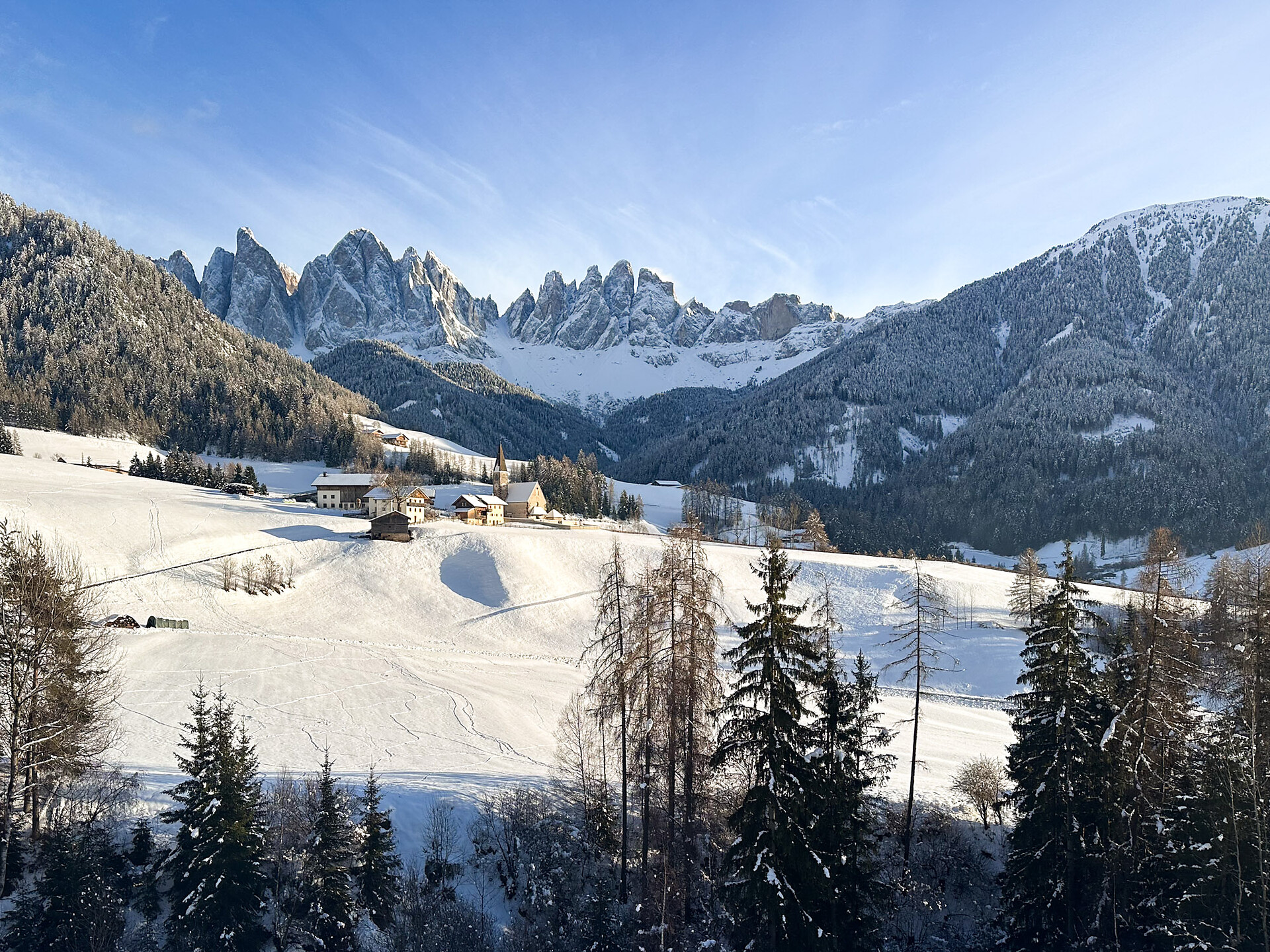 The Dolomites Region Villnösstal/Val di Funes is one of the most recognisable places in the Dolomites. A small village with a little church against the dramatic backdrop of the Odle group: this valley is a photographer's dream. In the birthplace of Reinhold Messner, tourism follows a slower path, rooted in peace and nature. Farmsteads dot the slopes, churches punctuate the landscape, and paths lead into the Puez-Odle Natural Park. A walk, a sleigh ride, a stop at a refuge: each activity follows the rhythm of the mountain.